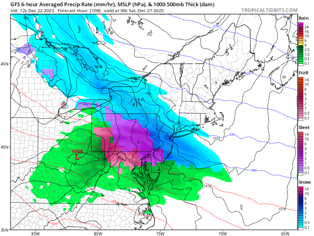 That's a primary problem. HP is weaker too and it really needs to be 1035+ to stand ground and make things work. 1030 or less will get pushed out of the way. Especially in the mids. 12z run wasn't what you want to see.
