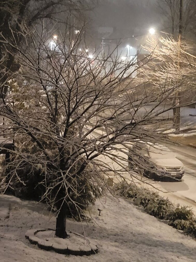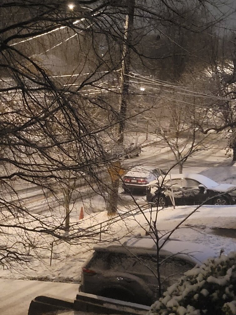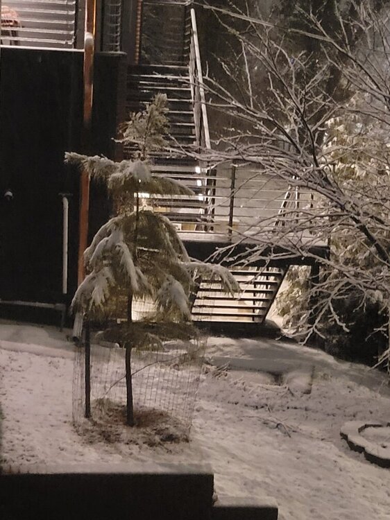 Went back out about 40 minutes ago (11:50)... that table now has about 28" and that cleared area had another four to five inches I had to shovel away. This new photo, rather crappy because I just couldn't see, I had walked out to my sidewalk.. the snow was pretty much at the bottom of my coat. (For reference, I'm 5'6".). Still snowing here, I think it has lightened up a bit.