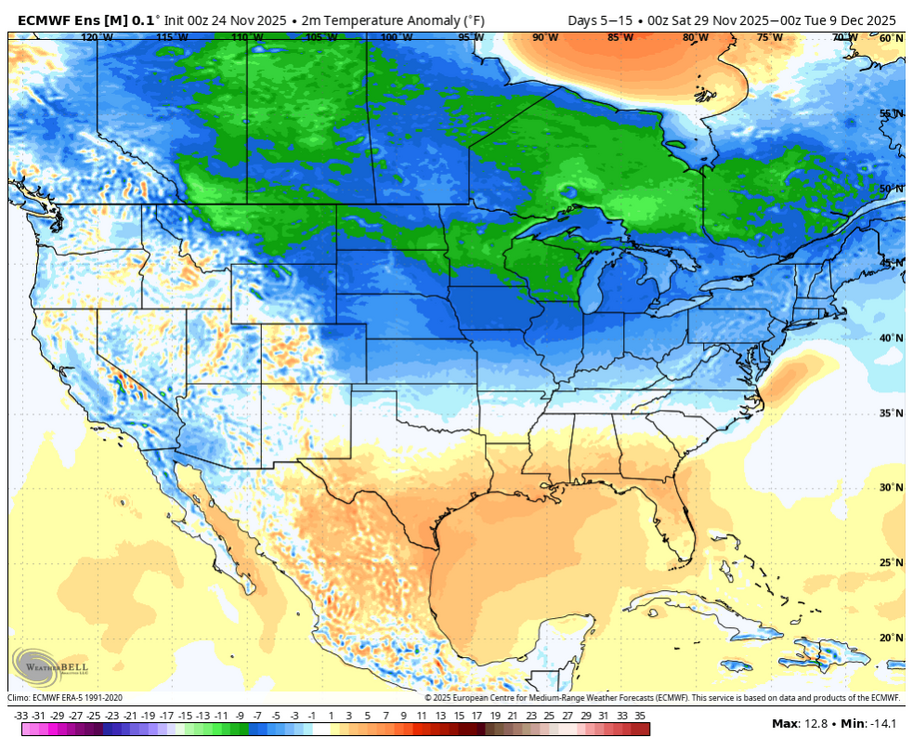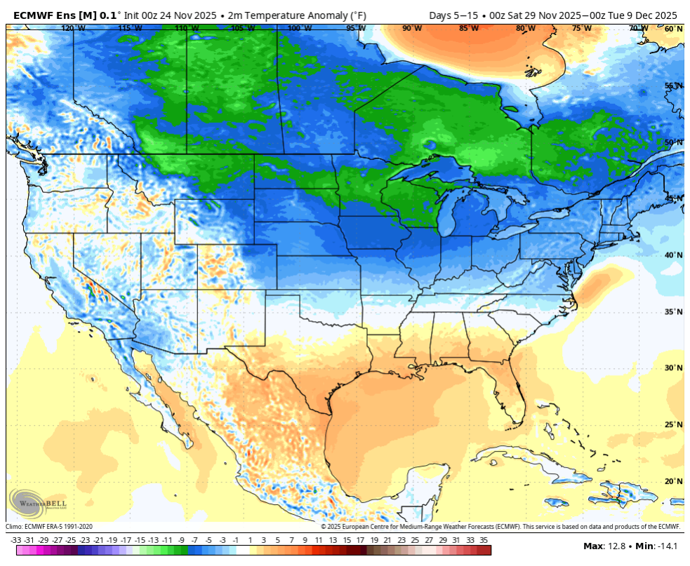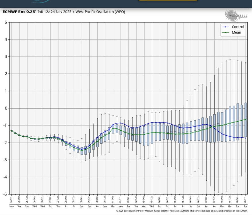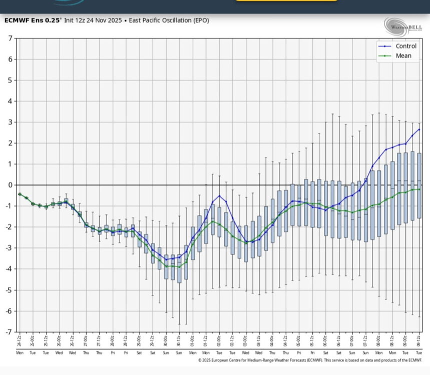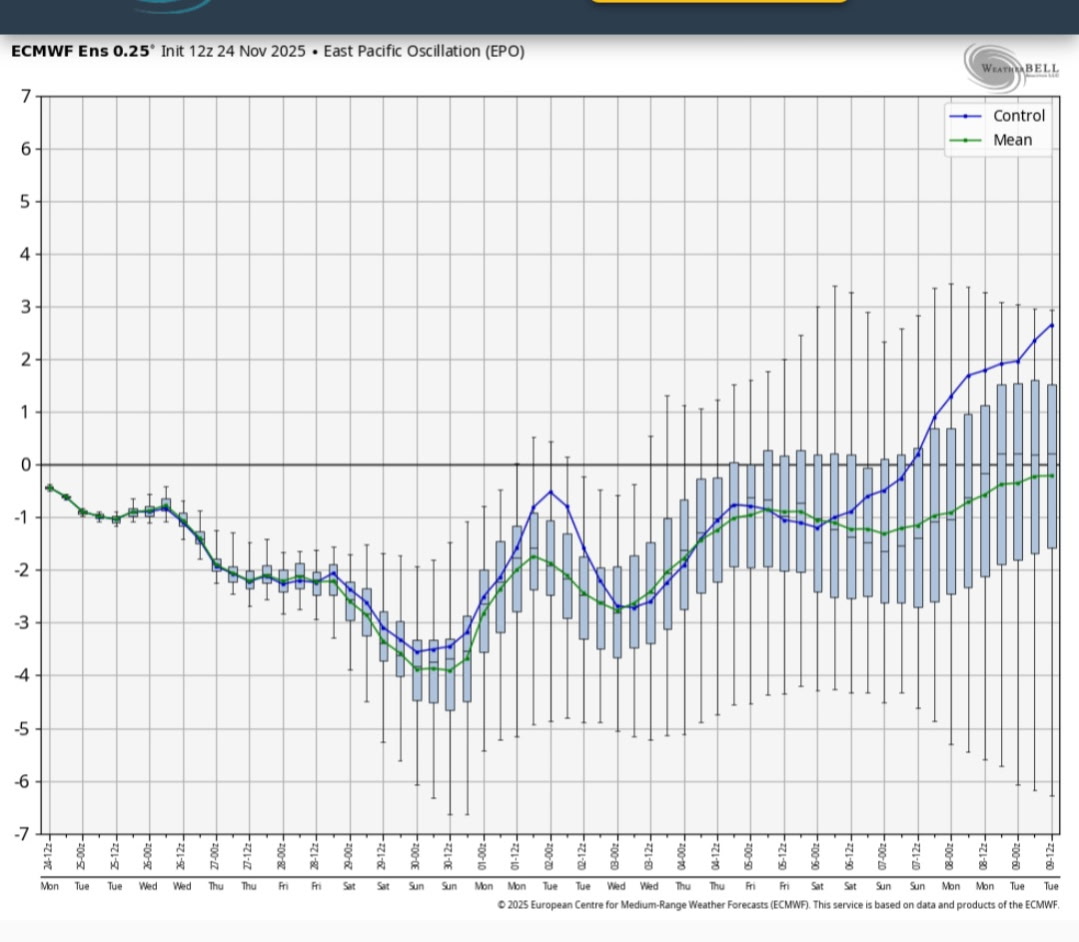 I put together a long range pattern thoughts document for LOT staff a few days ago regarding the the impressive agreement in a cold and potentially active pattern with some staying power. It'll be primarily -EPO driven at first but then with the stratospheric warming/SPV stretching event ongoing, that tends to translate with blocking also developing in the AO and NAO domains. If we can keep the PNA neutral to negative, could set up for a rare snowy December for a good chunk of the region. For Chicago since 2010, the only Decembers that had both above normal snowfall and below normal temps are 2010, 2013, and 2016. Below normal temps but below normal snow occurred in 2017 and 2022. I know that Detroit had a very good December in 2017 from a much more favorable clipper track there. Sent from my SM-S936U using Tapatalk -