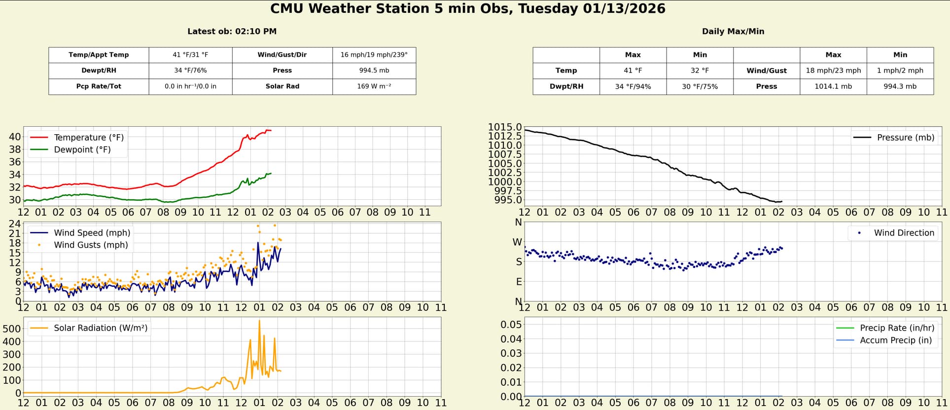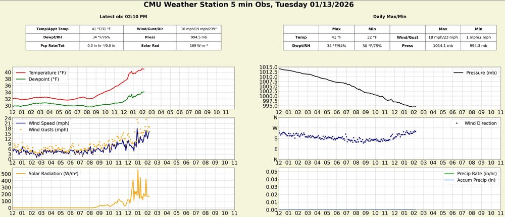 pretty nice timeseries from the campus wx station today, sw winds really ripping through campus, and we're a few degrees above modeled for the afternoon.