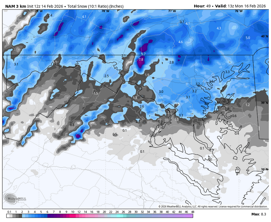 12Z 3K Nam stronger more amped than 6Z run - looks like Central /South Jersey gets the most - 12Z 12K Nam similar