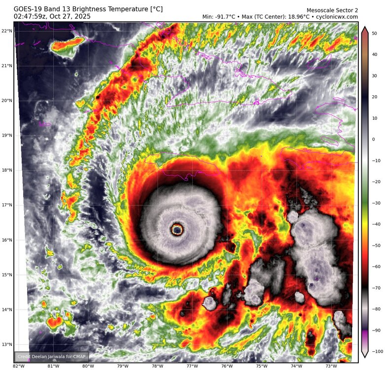 Millie’s is full nuclear now. All previous signs of an ERC rapidly disappeared after recon hunters flew out. It’s like a switch went off. Absolute nuclear….cloud tops rapidly cooled to -93 degree Celsius. That is extremely unprecedented in the Atlantic Basin. Infrared imagery is jaw dropping right now. Everything I’m seeing on satellite and infrared imagery points to a high-end cane making a run at sub 910mb pressures. Lightning is impressive and very rapidly spiked in the NE/E quad of the eyewall. Really wish we had recon flights enroute.