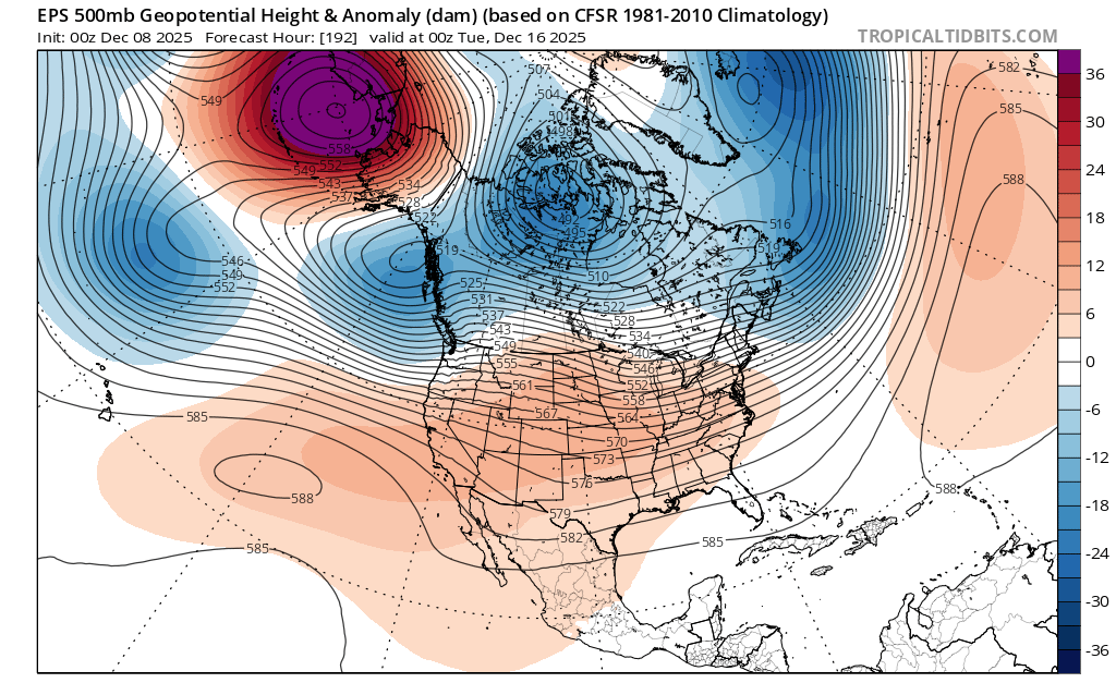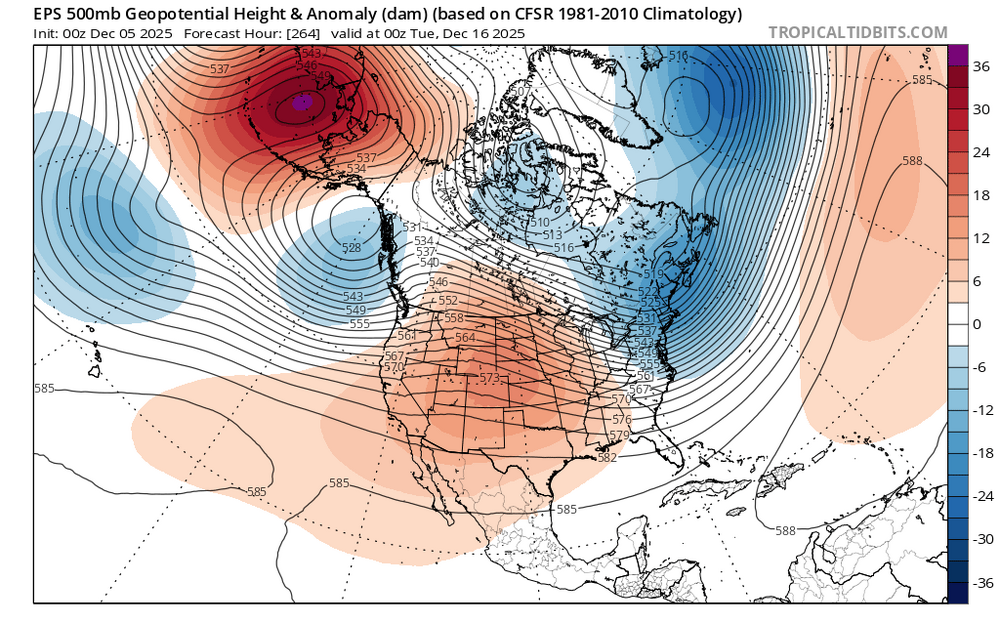18. This has been due to the inability of the models to resolve the split forcing pattern which has been in place this month so far. So the first 16 days of the month will verify significantly colder than the long range forecasts were indicating back in late November. La Nina’s often had colder patterns in December so this isn’t that much of a surprise. The interference pattern has created a cold MJO 6 type and not the canonical MJO 8 pattern and storm track. This is due to the forcing near the MJO 4-6 regions with the standing wave. So now that the models have a consolidation of forcing there as the forcing weakens over the Western Hemisphere, they are showing the seasonal moderation in temperatures we often see beginning in mid-December. The last few days have been the first time in a while that they are actually raising heights more than in earlier runs. So the ridge coming east faster is a function of the big Jet extension and MJO 4-6 forcing. Remember last early December how the models underestimated the mid to late December Jet extension and lower Pacific heights. New run faster Pacific Jet lowering heights more over Western North America and raising heights in the East Old run weaker Pacific Jet and stronger ridge out West