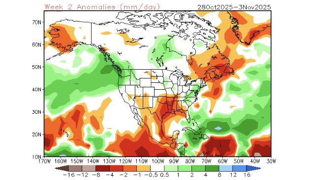 The latest CFS outlook has now shifted toward a wetter outcome for the close of October and start of November.