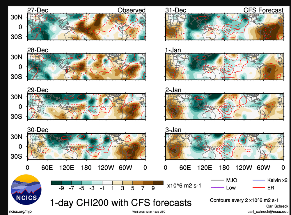 Better get something fast,it looks rather bleak right now down the road with that strong ERW thats fixing to pass along the IDL the next few days,Maybe it will weaken some but this could cause the tropical forcing to shit towards the WP and MC,probably end up seeing RMM madness continue,you're seemingly starting to see the NINA background getting taken out now even tho it's still NINA.