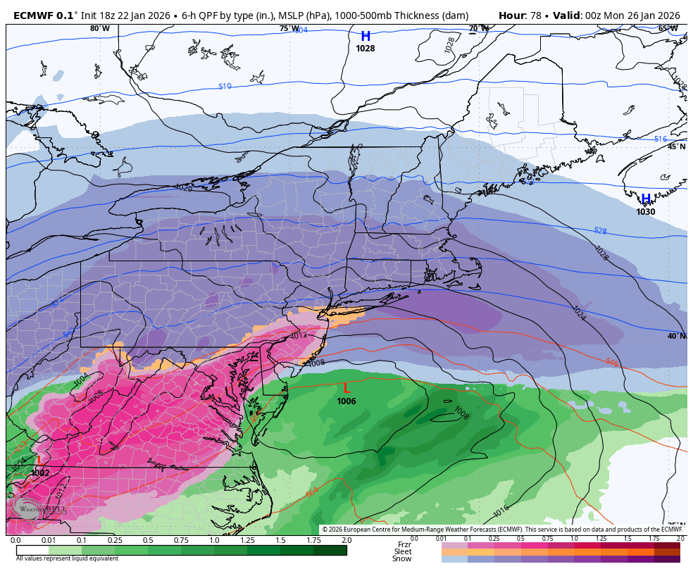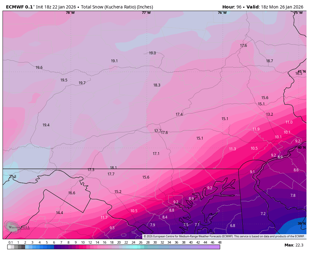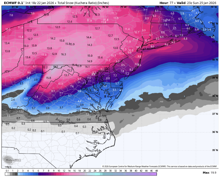 Pleasantly surprised by the overnight models. This thing looks, dare I say, locked in for the track? Westmoreland Co WSW has 12-17 inches in the notice and a glaze of ice possible. -