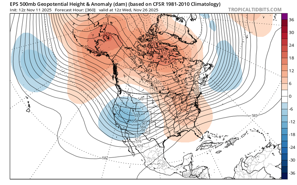 Even out to the end of the EPS run it’s still holding the same look getting closer to the start of December. Models have come in much stronger with the blocking forecast over the last week. But we need to get that trough out of the West in December to have a shot at going over 4” which is required for better snowfall prospects the rest of the winter during La Ninas. It’s still early so we have time to see how things evolve once into December.