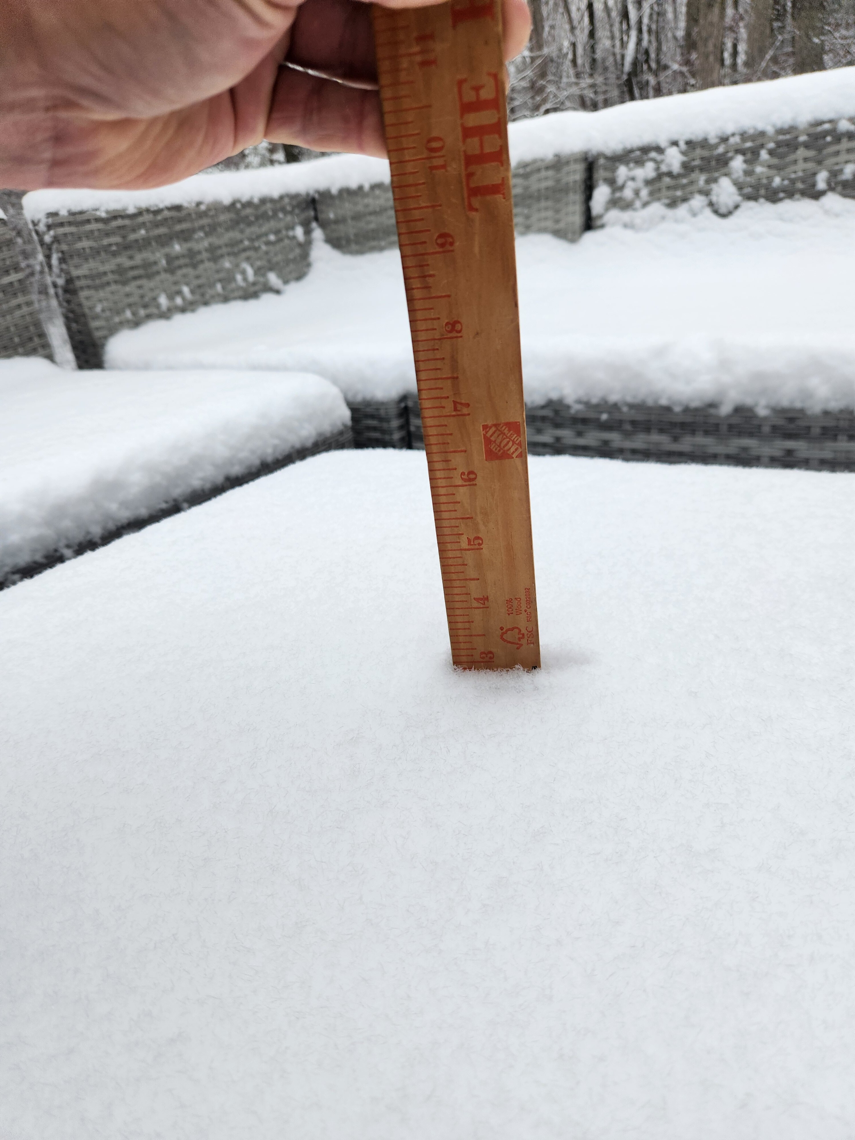 0.8”, +0.3” in 18 minutes. Probably around 1” per hour right now.