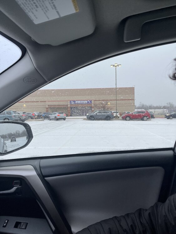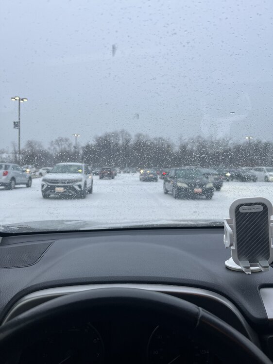 Long reach parking lot from my daughter It was respectable if light. Now at work in Greenbelt and it’s teetering on moderate snow. BW parkway has snow on it except narrow travel lanes.