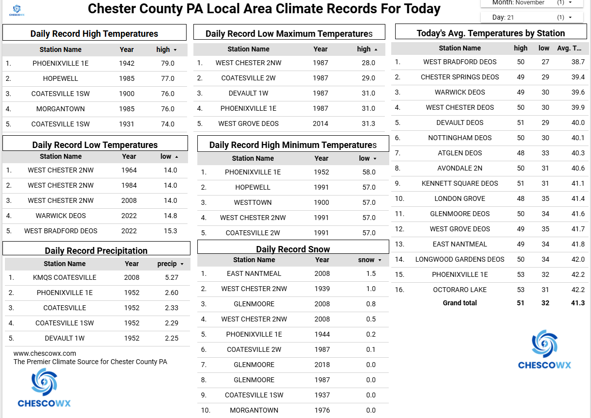Morning low of 21°. November has certainly featured some chilly mornings. -