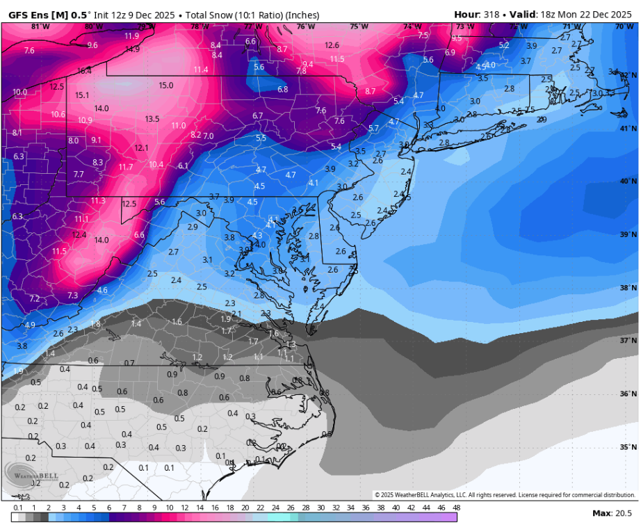 12z GEFS may look very good, but it's heavily skewed by one storm in P8 that drops about 30-40 inches of snow (3-4" QPF, imagine kuchera lol) in the metros lol