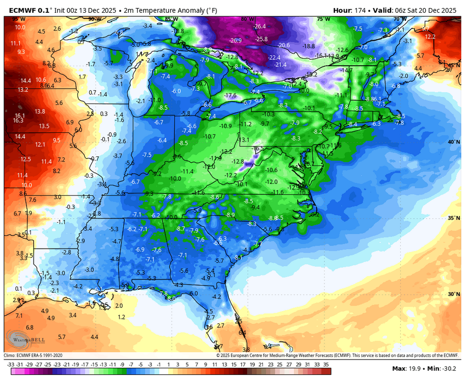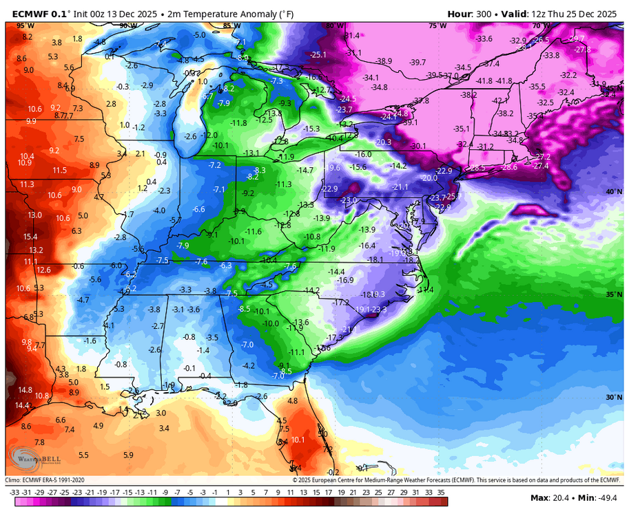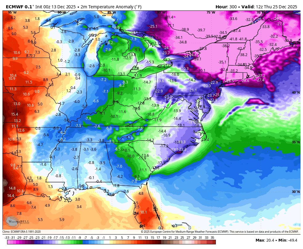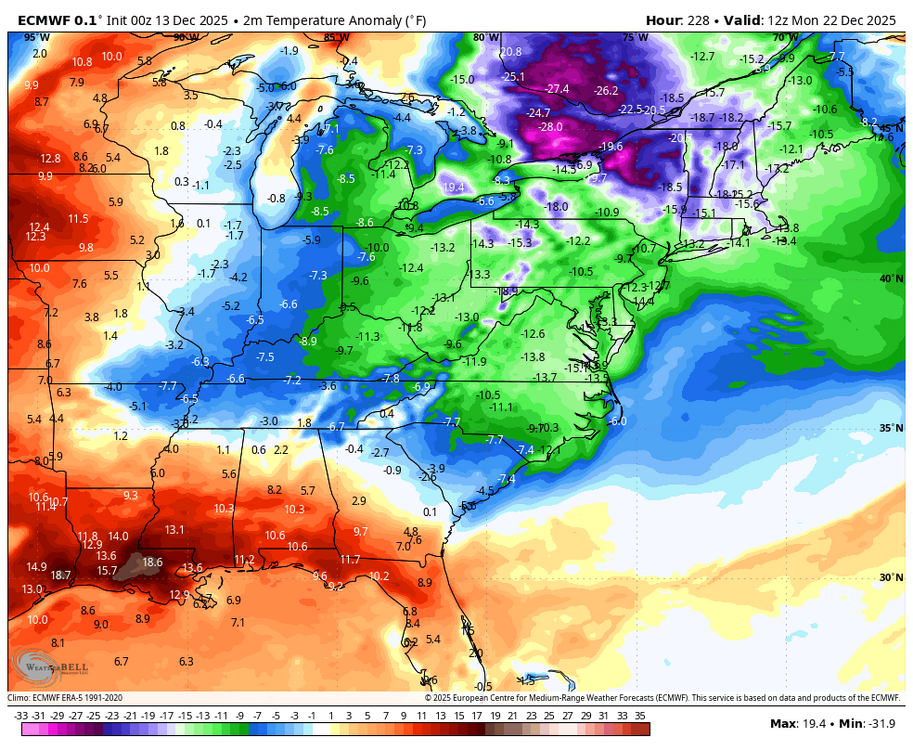 I don't have a lot of time this morning. A trend worth watching...overnight and morning deterministic runs (CMC, Canadian para, 6z AIFS, and 0z Euro) continue to erode the warmup. That doesn't mean we won't see warm air masses, but go look for yourself. They have, even the gfs, found the Dec 20th cold front. This really looks like more of a back-and-forth pattern where warmth surges, cold erodes it quickly due to the cold source, and wash/rinse/repeat. Ensembles aren't there yet, but at this range...they will wash out any trends. -