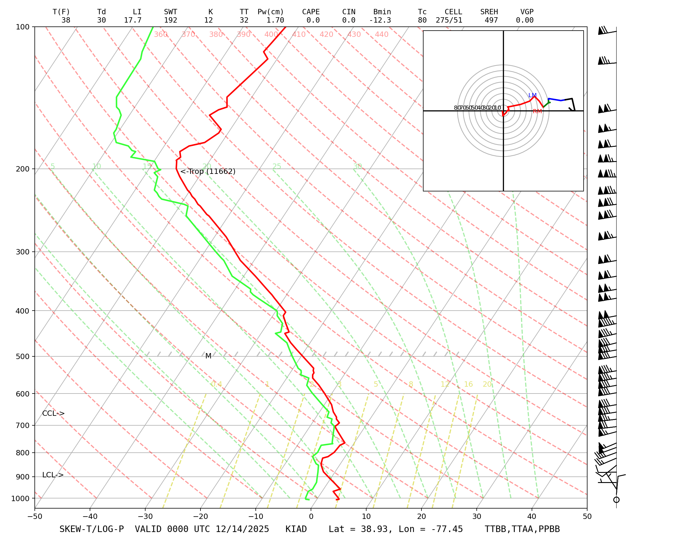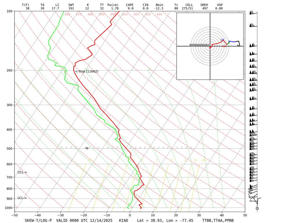 KIAD sounding. Freezing level just below 900mb. Biggest difference I see from the 18z 3k NAM prediction of the 0z sounding is the dews are lower. Boundary layer temps maybe a smidge colder as well.