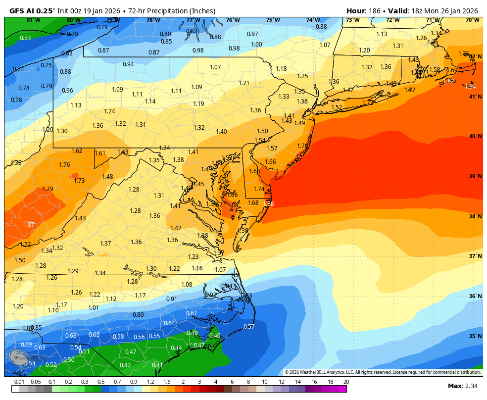 ^ There’s no way the accumulation would be that smooth west to east over the mountains. The southern apps would absolutely have to steal some of that downstream accumulation. -