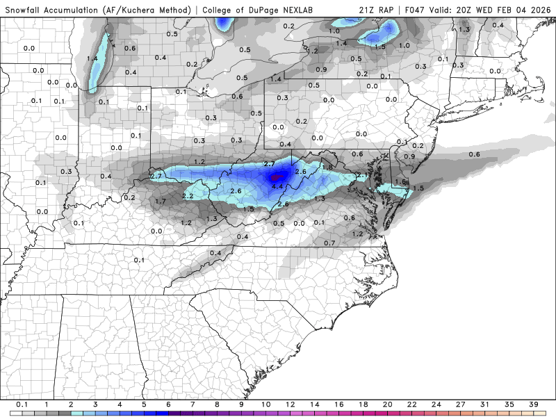 My area is so often off, as is Daniel Boone's that an artificial snow hole shows up on the GFS and NAM over us for almost every storm. This is something like 8 years in a row here with about 50 percent or less than actual accumulation recorded. -