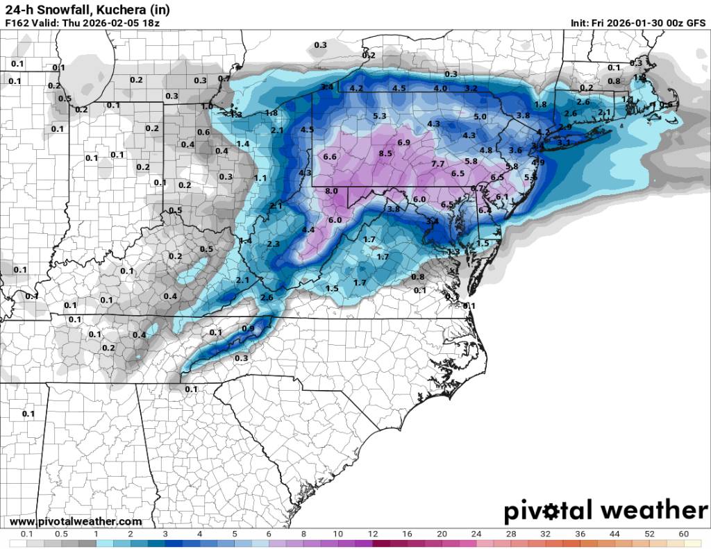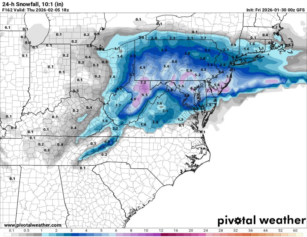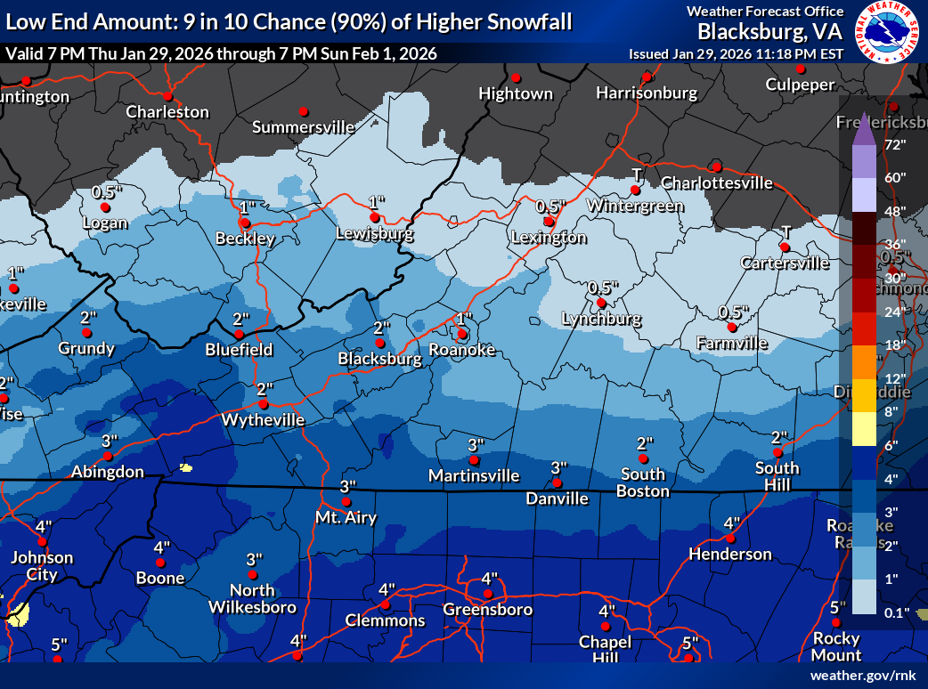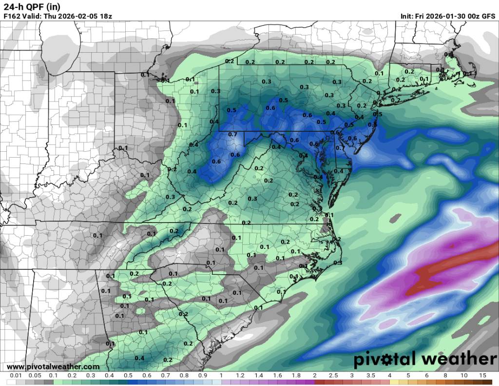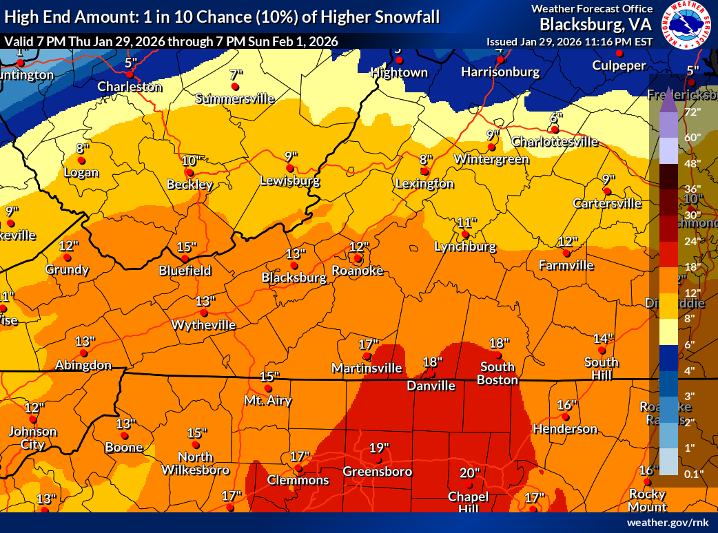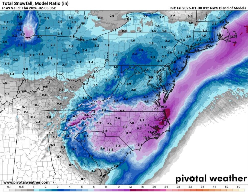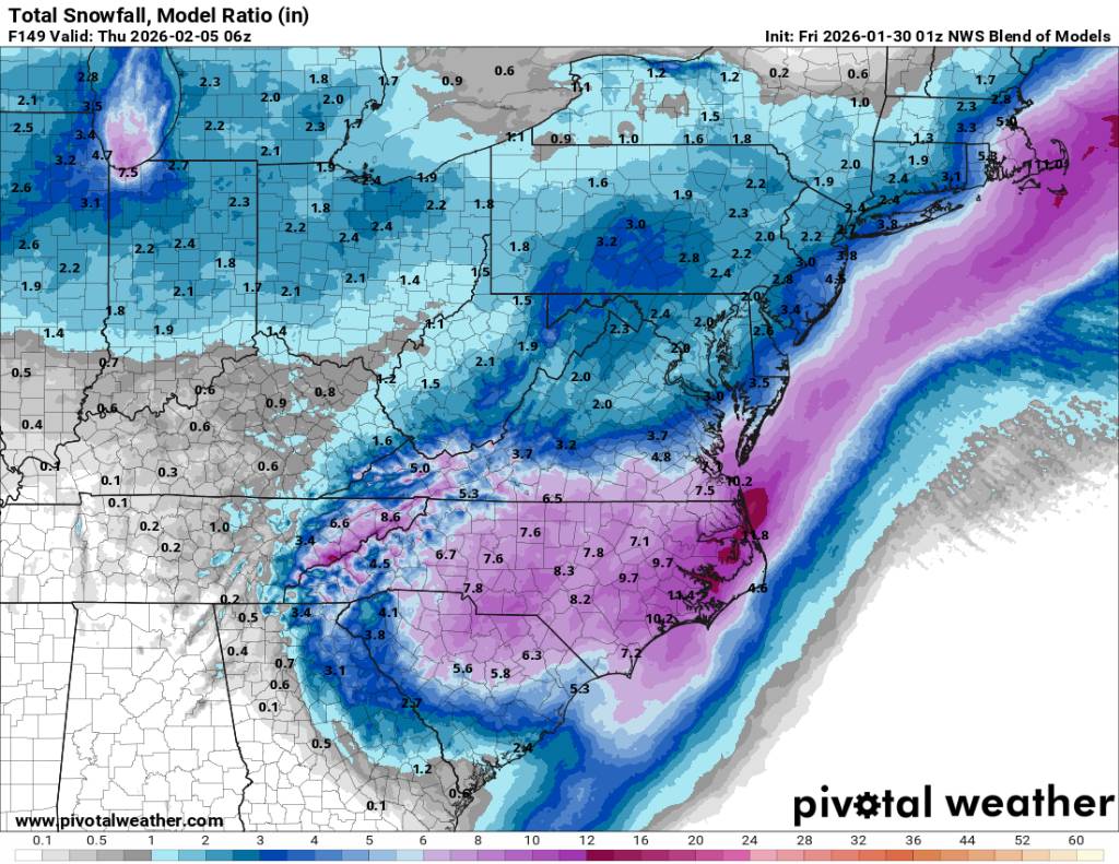 Warnings up for the Triad and they dropped 1 inch from the prior watch, now 4-7", which given the overnight model runs is probably the most prudent approach. You have to figure someone in ENC from Little Washington up to Elizabethton is going to jackpot on this. Gianna is on her way! -