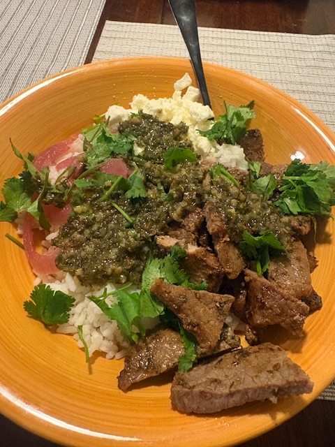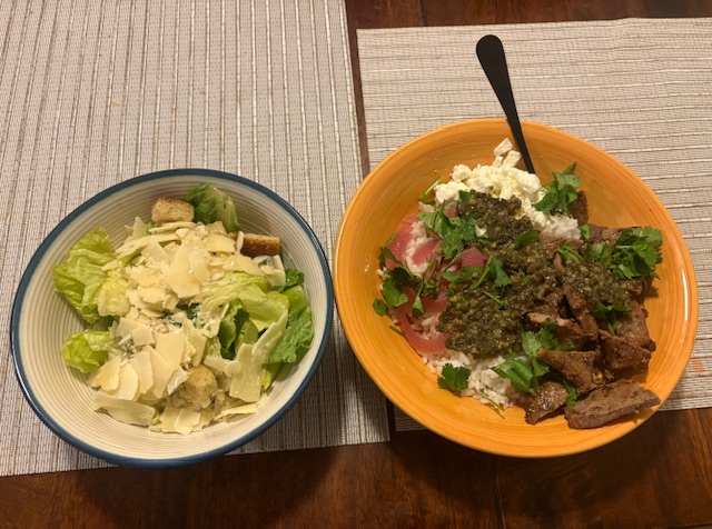 Ya we normally be eating protein like chicken or steak with rice or something at home. Tonight we eating chimichurri steak bites over rice and a salad for a side.