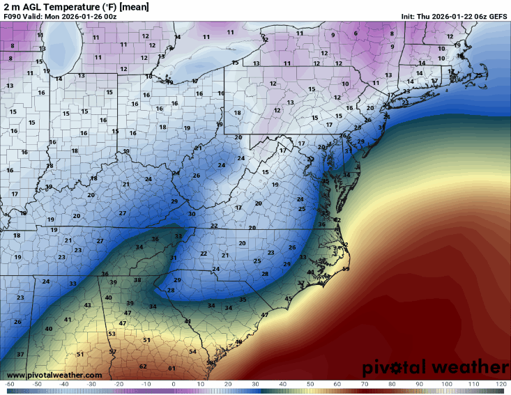Been up since this morning. I missed it on the Public page. Looks considerably better than some of the lighter (blowtorch) charts I've seen. Mostly lines up with national WPC stuff too. I'd still back off for KCHA (use those lower charts) but I like this one points northeast in the Great Valley. Crazy downslope still shows in the foothills, while keeping the other side of the Valley locked. And those elevations are in the warm layer.