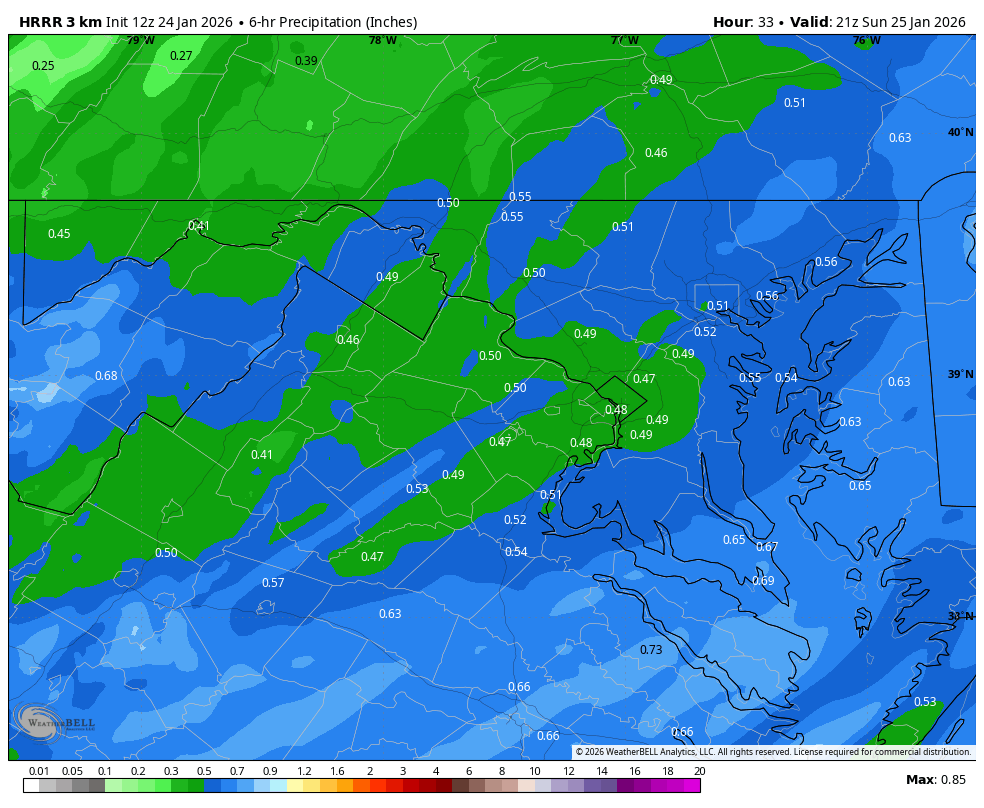 The 06z HRRR was able to "beat back" the mix line in the late morning period. It doesn't happen on this run, and it is more NAM-like in flying the mix line north. Not nearly as bad as the NAM though. -