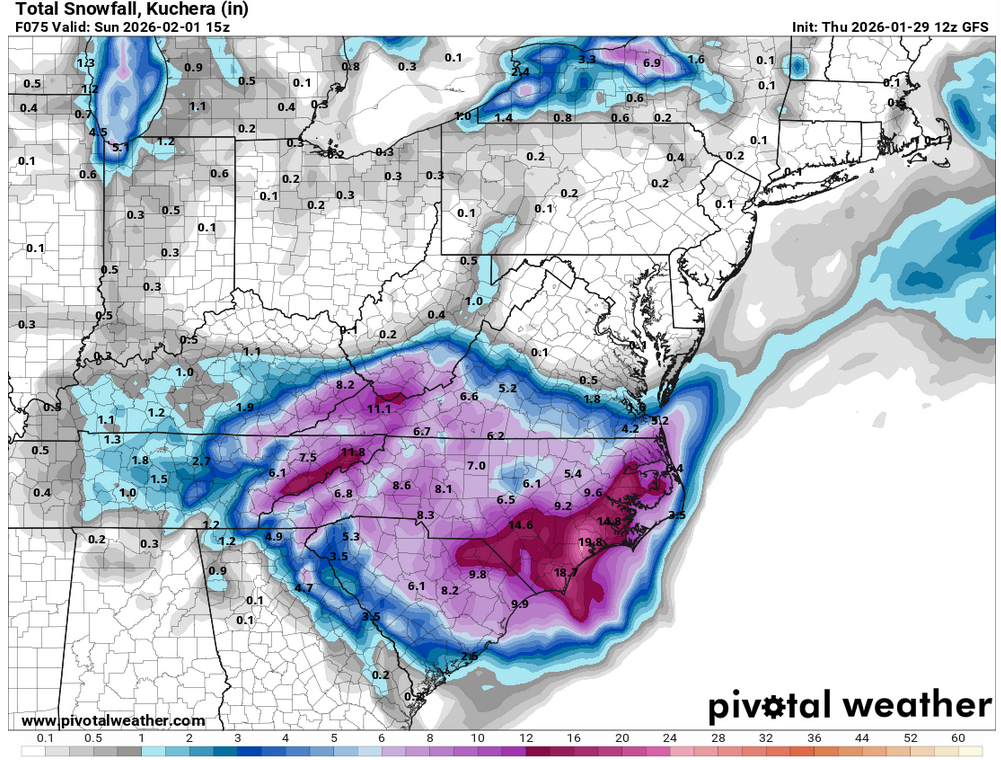 This is not the first time I've seen that modeled gap between Raleigh and the Coast. Greenville less snow than anyone? What the hell is going on! -