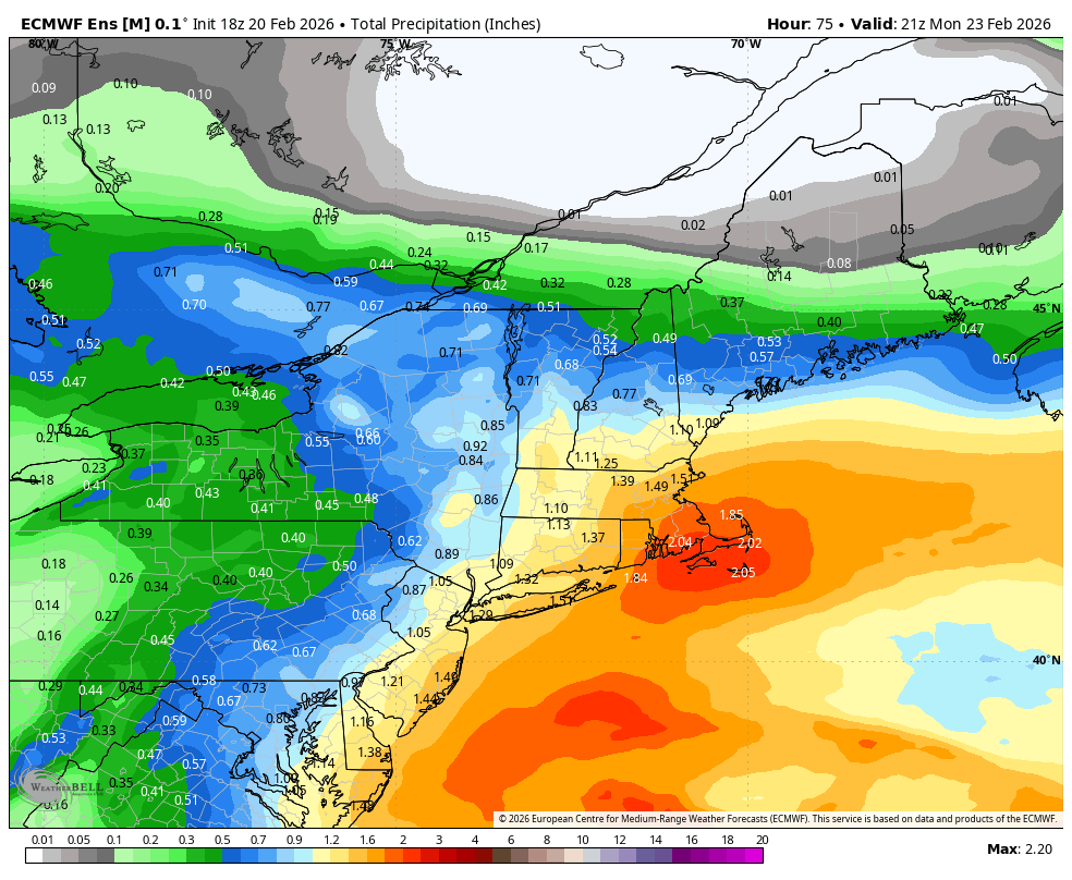 So you believe the eventual track will be over or inside the benchmark? Never seen a track SE of the benchmark jackpot west of Long Island and eastern New England... Given the current modeling, this storm is reminding me more and more of 12/19-20 2009... Storm came off VA/NC and bombed as it moved NE... Storm skirted just SE of the benchmark... It unloaded on Long Island... through eastern New England... Obviously if the track continues to move N/W, and it does end up inside the benchmark, I can see the deformation zone going further west into NJ... The next 24 hours are gonna tell us a lot... just glad it doesn't look like it did 24 hours ago... Sent from my motorola edge 2024 using Tapatalk