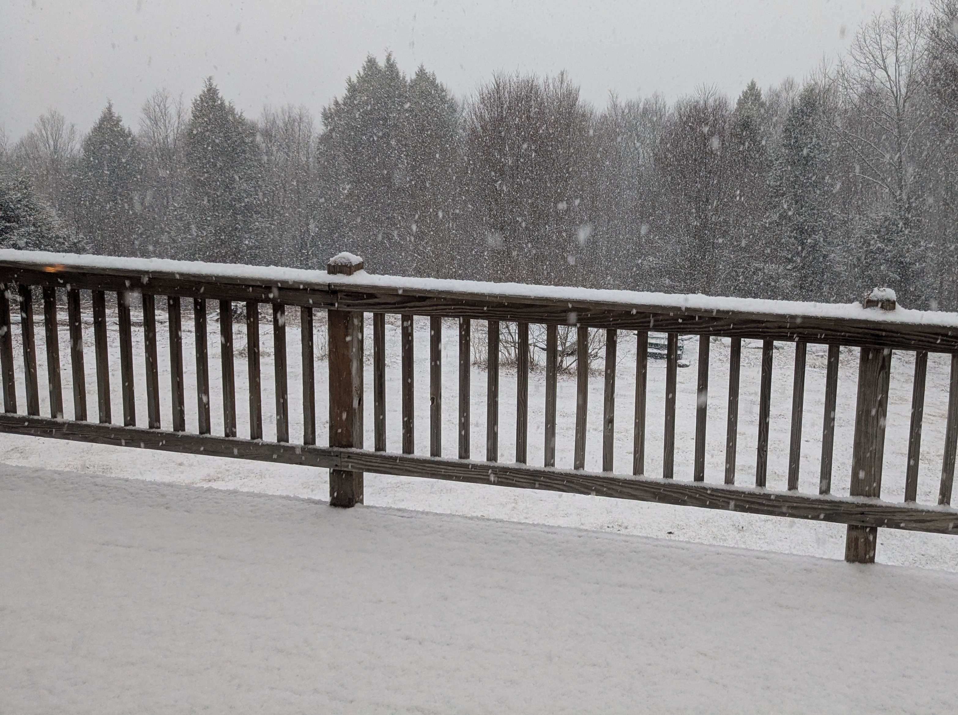 Well that was fun while it lasted. Saw something out of the corner of my eye and looked and it was snow lol. Just enough for a little bit to stick to the grass, not much though. Down to a very light flurry now
