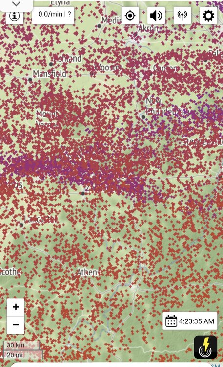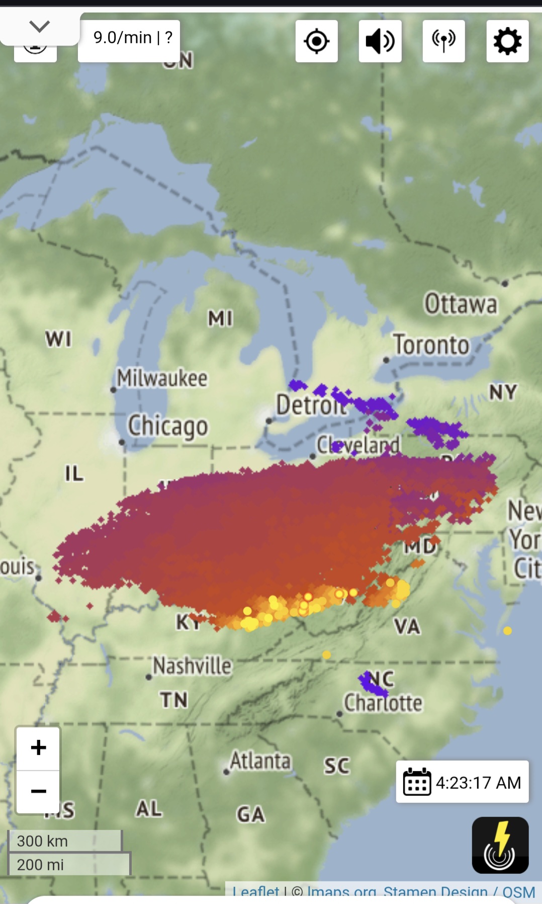 For the most part we ended up on the outside looking in. I think this is a pretty decent lightning event even for the Ohio Valley. Lots of talk about the duration and the sound of the thunder last night on the internet coming from out that way. I was really thinking that that would be us last night. Im dying for a lightning event like this.9 -