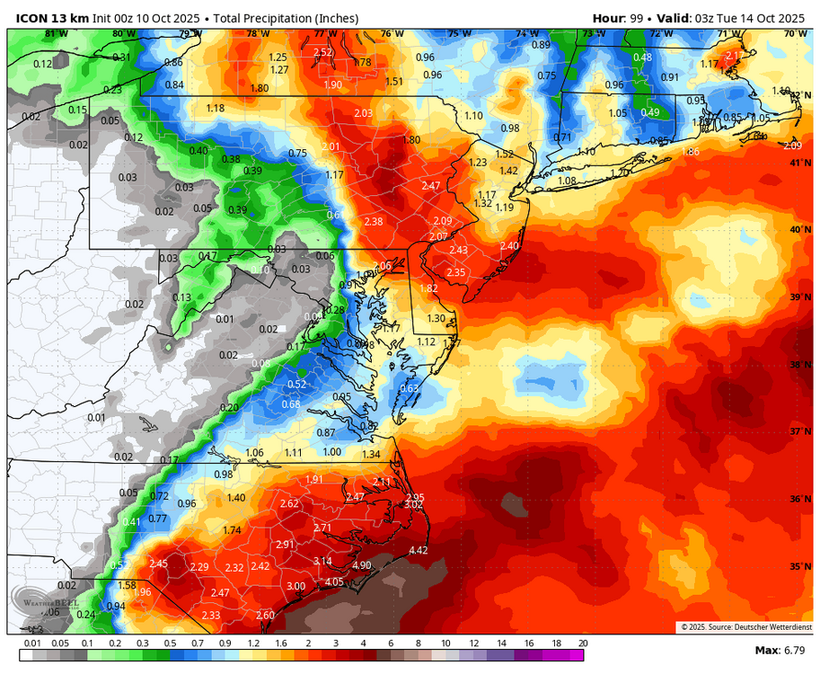 Looks like 1" - 2.5" with 15 - 25 mph winds is on the table. Boom potential is 2" - 4" rain, with 30+mph wind. Bust is less than 0.5" and a slight breeze. -