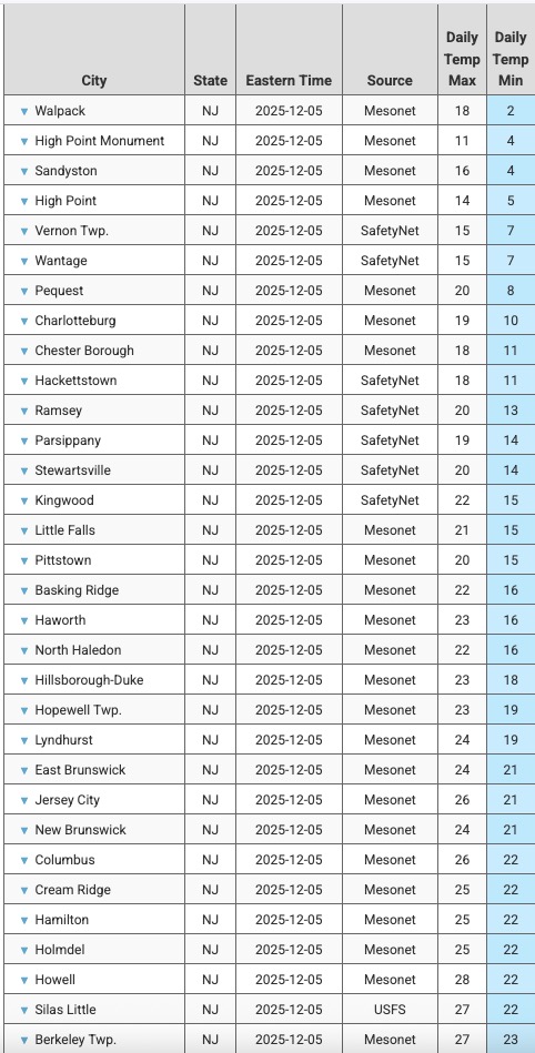 Overnight low of 10 here. If I had any meaningful snow cover it would have been colder. Just scattered trace amounts remain around here. Coldest NWNJ icebox spots with a few degrees of zero.