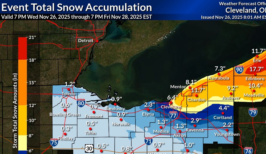 Reports coming with 6-13" away from the Lake to 3-5" along the shoreline. Decent storm. LES should be intense over in the UP later today into tomorrow.