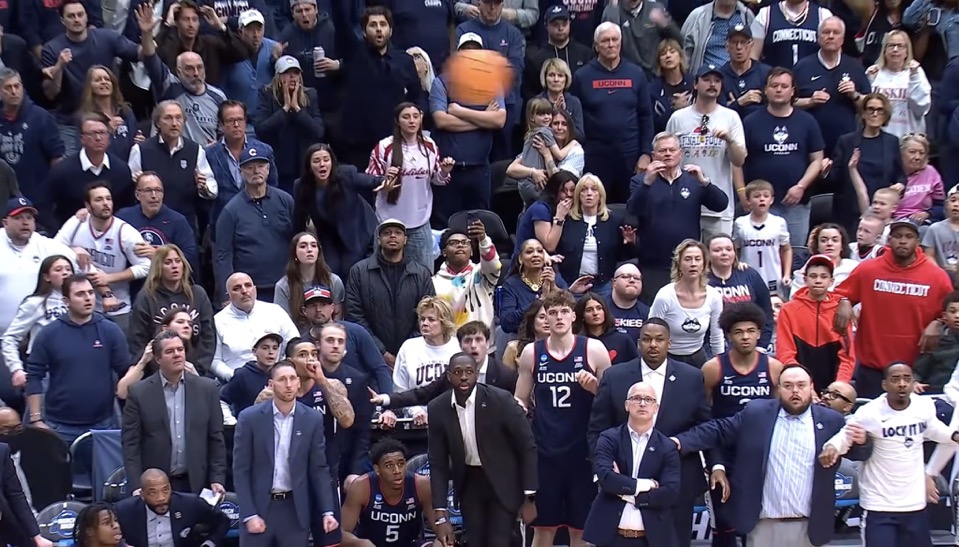This is timeless.. the ball in the air.. the reactions of each player, coach, fan. One of the best sports photos ever taken