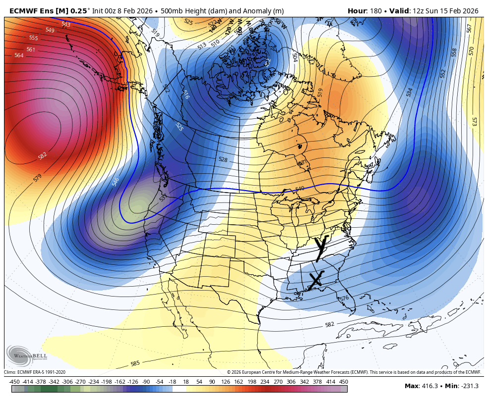Oz guidance across the board didn’t eject enough energy and trended more suppressive with the Atlantic look. Bad combo. Result is this. We need x to be where y is and stronger but that’s redundant because for it to be where y is it would have to be stronger. -