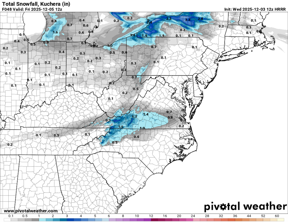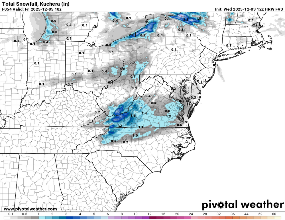 I think the RGEM depicts how this will play out with the totals south of the VA border being rate dependent (a dusting for many but locally 2")