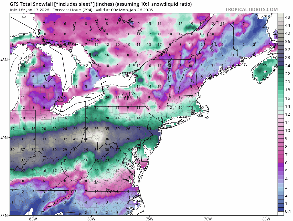 The 0Z GFS is giving >1” of snow to this area on Jan 18th, which would be the second straight Jan with measurable snow. That’s never happened since official records started 150 years ago. The closest thing to that would be Jan of 1921’s 0.5” and Jan of 1922’s major icestorm. And then the glorious Jan of 1977 had two. Climo always says bet against measurable wintry precip here as no more than 25% of winters have had that. OTOH, there has been increased ensemble support. But OTOH, there’s the typical NW trend when there’s no -NAO, which would work against it. So, keeping all of that in mind, I’m taking this with a grain (2m temps are also progged to be marginal as of now with 34-35 being the coldest):