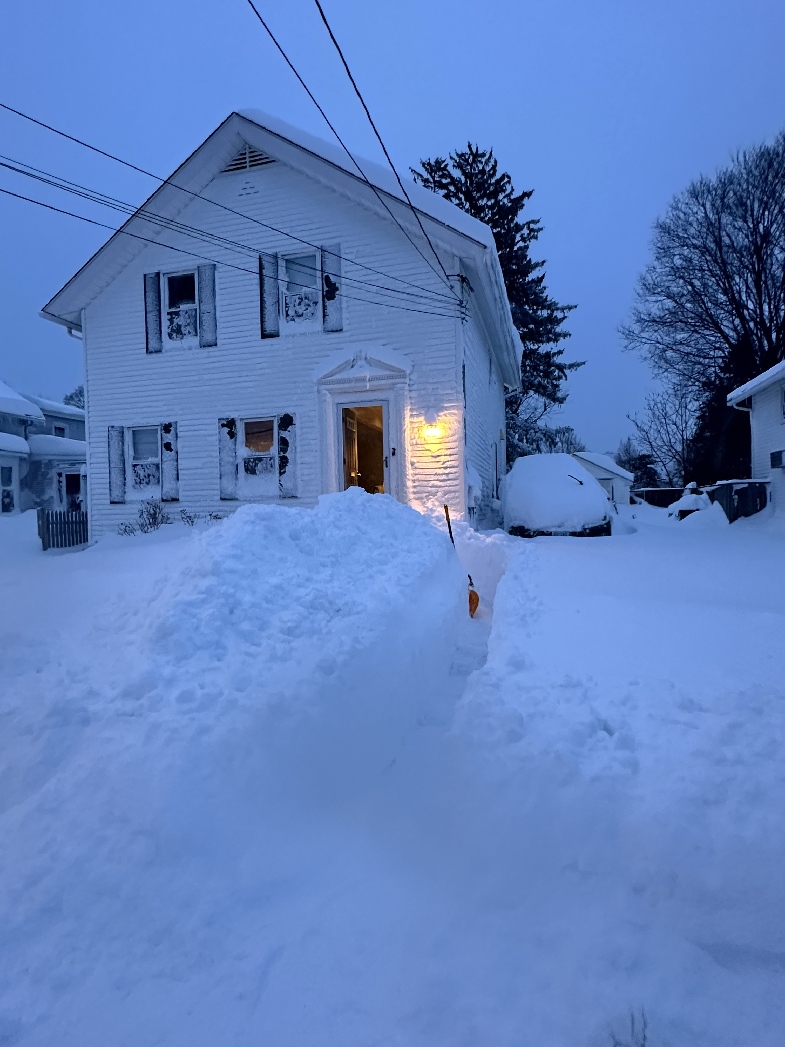 Cleared a path to the street and took a Jeb walk. Wow. We are damn near 3 ft. Still lightly snowing. . -