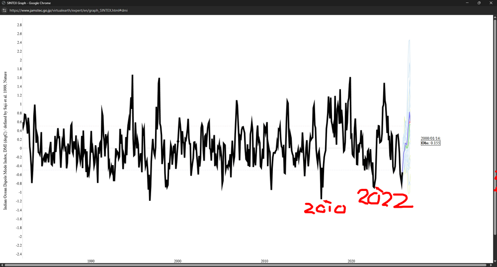 Excellent,i did some research of the DMI earlier today and gave up because of the ENSO,but these years into 2010 and 2022 in the modern day era more or less had like the same pattern to some extent with whats going on in the WP,even tho you had a more strong Nina in 2010 and even less so in 2022 and even more less so this year,the ENSO still plays a part into the IO -