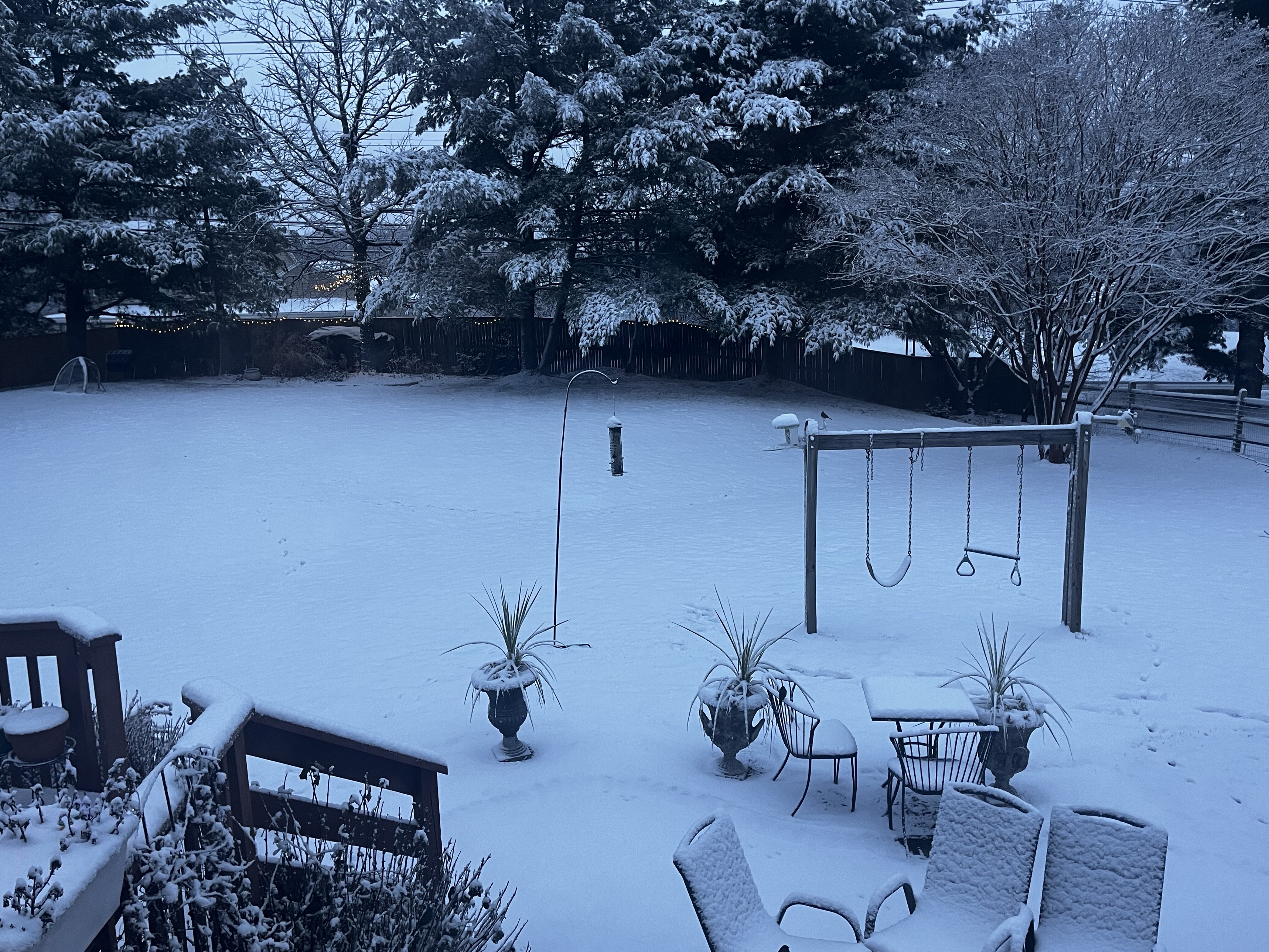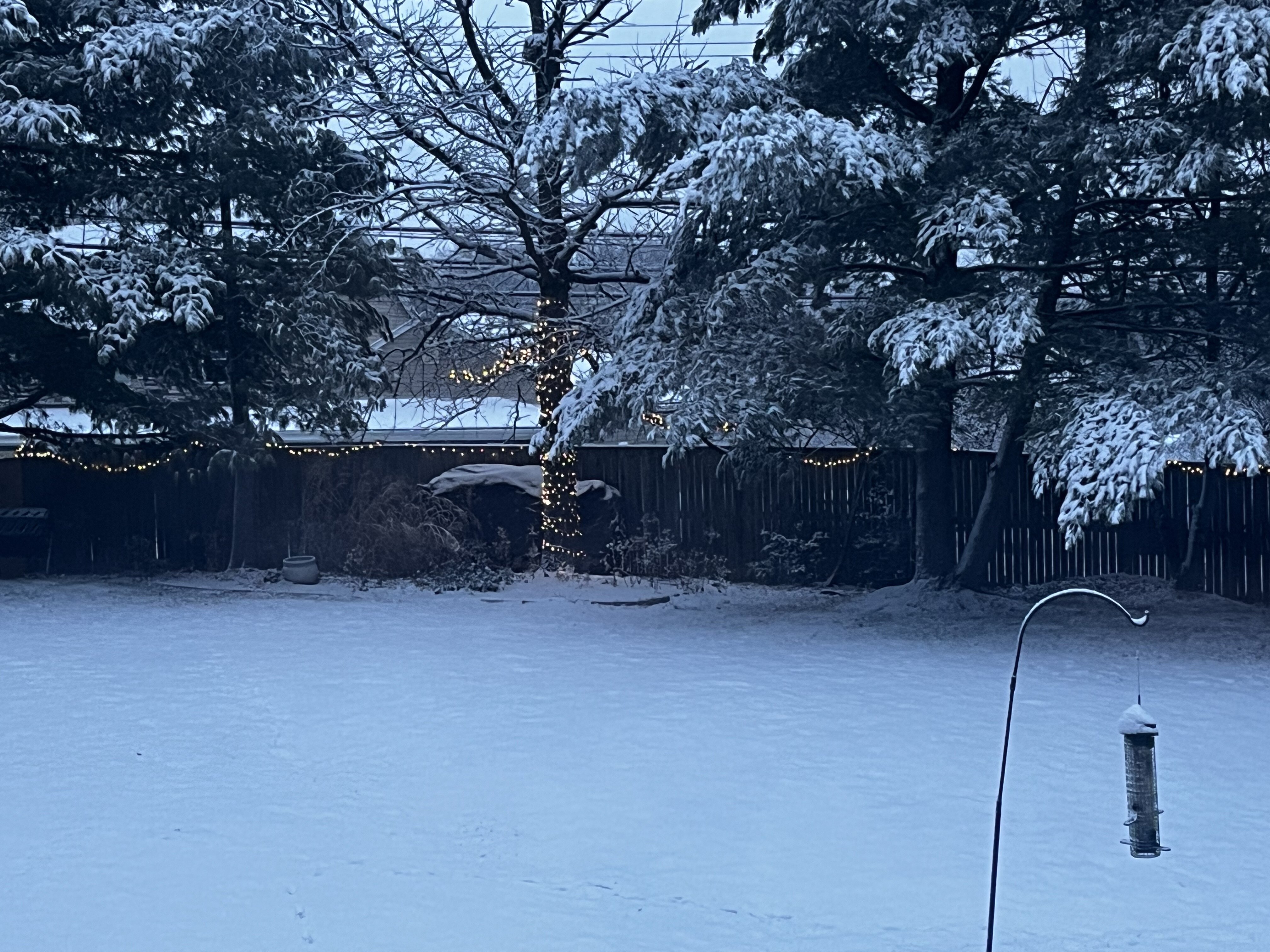 Visibility dropping below 0.5mi now, with all surfaces covered. Much better snow growth than our last storm! -