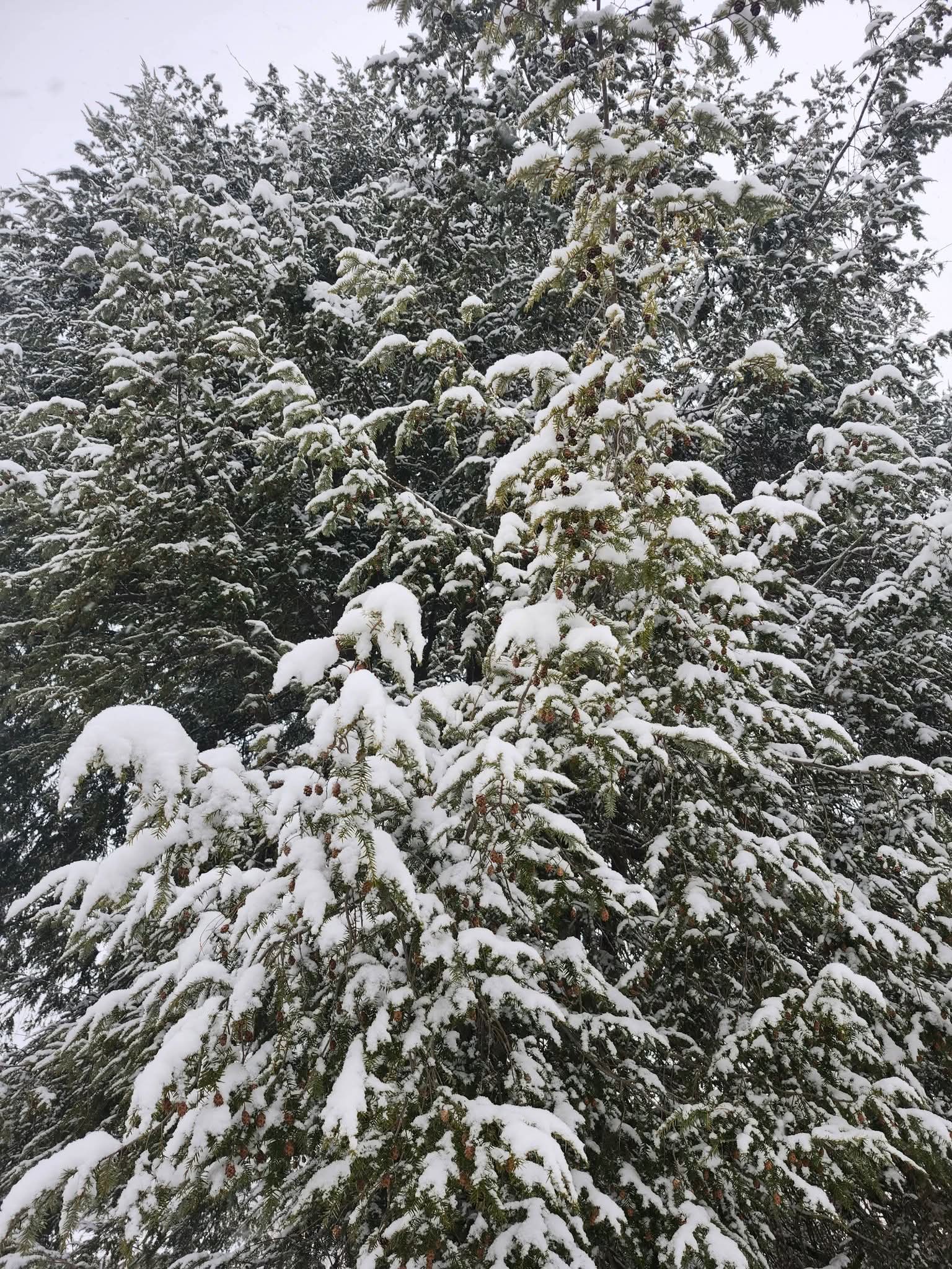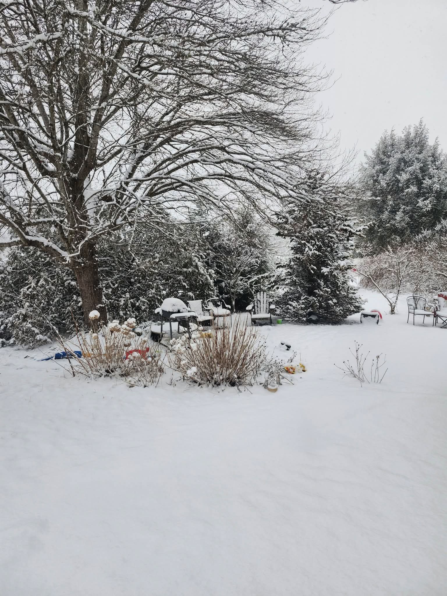 The snow is so light and fluffy, it falls through the board cracks on the deck. Wow.