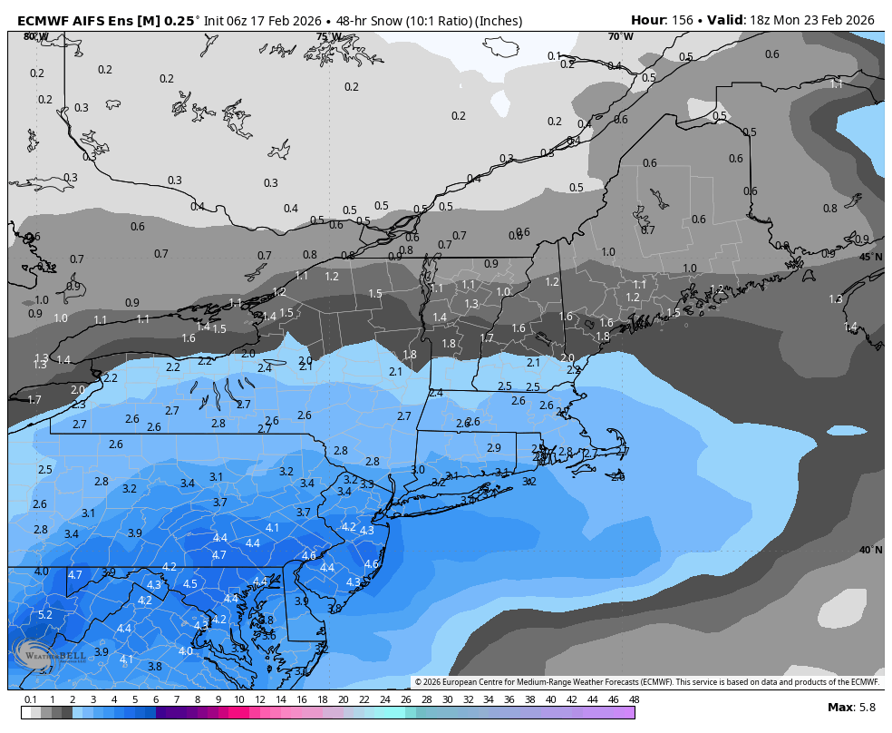 At this point we should probably stick to the ensembles like the EPS AIFS. Very tricky storm spacing since the systems are so close together. If we ever needed a perfect thread the needle to pull off a really big one this would be it. Looking at the individual OP runs gives new meaning to all over the place.