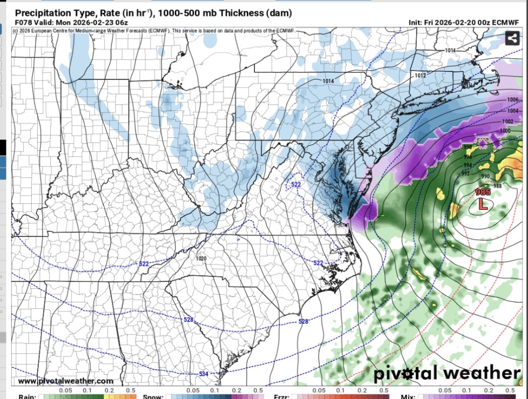 Euro holds. Light to moderate event for all of us. We still have a window for a west trend and a big storm but if we don’t see it by 0z tomorrow night, it probably won’t happen.