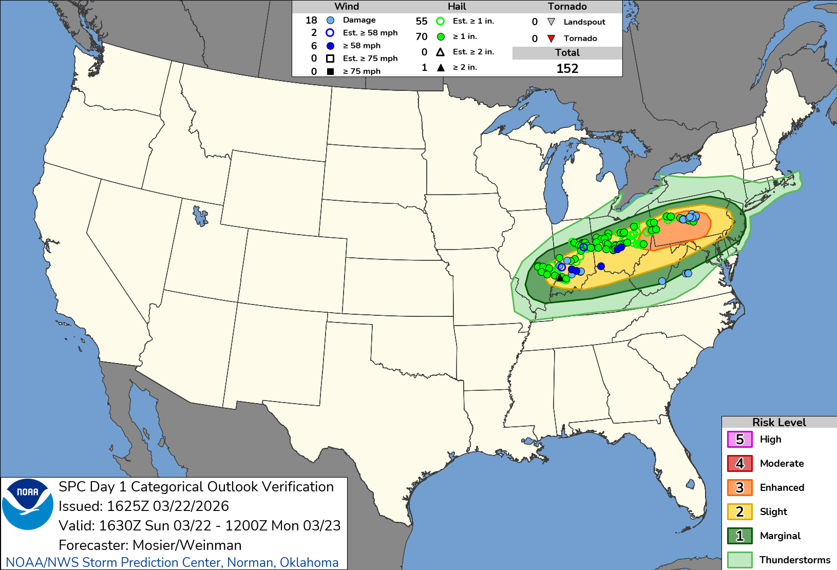 A good chunk of Pa. has been Upgrade to enhanced, at first glance it doesn't appear that the tornado threat has increased, but both hail and wind threats ,have increased significantly . Both are at 30% probabilities ,level 1 hatching for all of cpa west of the Susquehanna river. Apparently, a level one 1 hatching indicates there could be hail over 2" in diameter and winds in excess of 74mph if Ai is feeding me information correctly. https://www.spc.noaa.gov/products/outlook/day1otlk.html -