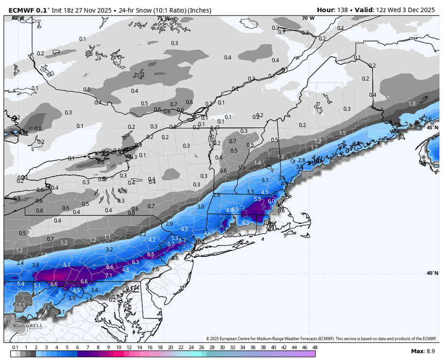 I wouldn't say that at all. You got two different camps with two different outcomes. Either you're going to worry if you're in Northern New England that it's south of them, or you're going to worry in Southern New England that your rained out. It could go either way. So in other words, if you're going to worry, very very premature at this point. -