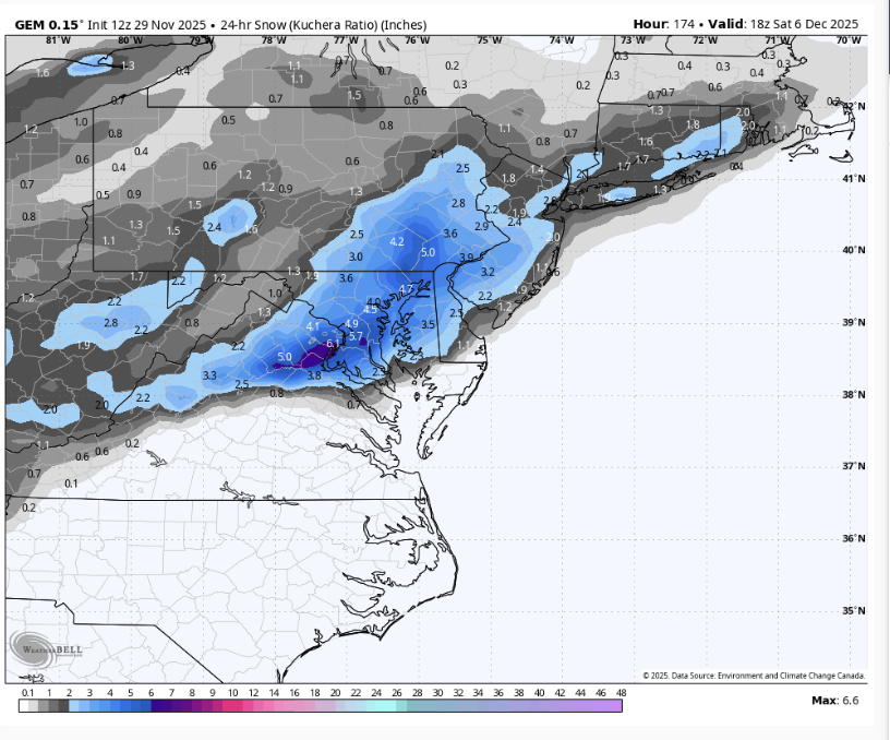 I’m going to say 4-6” is probably ceiling with this. Maybe some 7-8” reports if things really fall right and depending on the angle of the ruler into the snow. But I will wear a Santa hat and do cartwheels if I can get 4-5” Dec 2 -