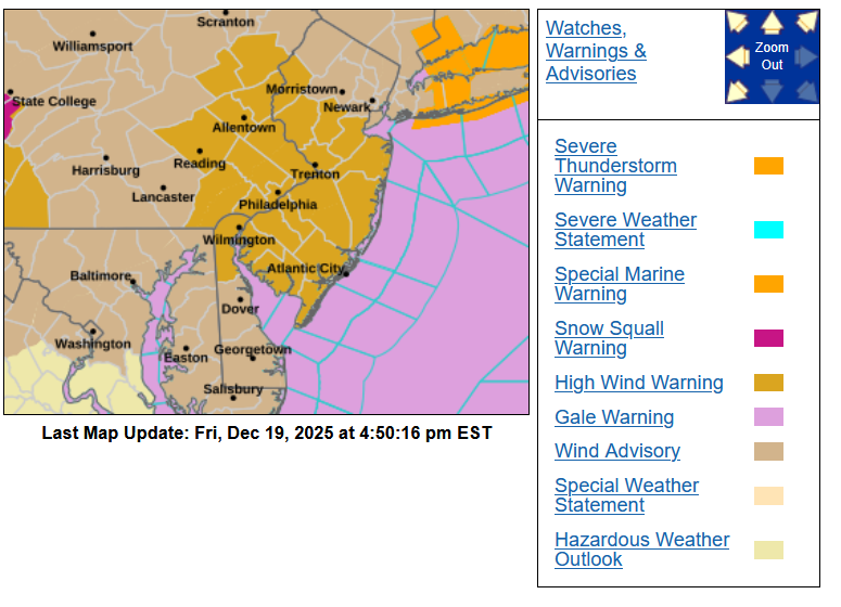 SHORT TERM /MIDNIGHT TONIGHT THROUGH SATURDAY NIGHT/... -- Changed Discussion -- Key Messages: * A strong cold front will move through near noontime on Friday, bringing strong to locally damaging winds and moderate to heavy rain, along with isolated thunderstorms. * Potential tying or record breaking temperatures early Friday fall back into the 20s Friday night, to below normal levels. Any leftover moisture may freeze if drying does not occur. Rain ahead of a cold front becomes more likely as the nighttime progresses with most of the area likely seeing rainfall by sunrise Friday. Strong low level jet lift and moisture convergence, plus a potential convective element with elevated instability, could cause the rain to be heavy at times. The heaviest rainfall likely occurs starting around sunrise with some impacts to the morning commute with the threat continuing until the cold front passes through late morning/early afternoon with a line of convectively-enhanced showers. Areas of minor/poor drainage flooding are anticipated. Flash flooding is not a concern at this point with the system pushing through fairly quickly and the liquid equivalent of any remaining snow pack is probably no more than a tenth of an inch. Still a chance of a shower in the afternoon behind the cold front, an maybe even some snow mixed in well NW of the city towards sundown. Regarding winds, an 80-90kt low level jet at 925mb shifts through much of the coastal area during Friday morning. Forecast soundings however show a strong low level inversion, so it appears that winds are going to have a tough time mixing down to the surface. It might take surface temps reaching 60 degrees to get mixing deep enough to bring down gusts strong enough for high wind warning consideration, and some spots may warm up close to this. Thinking is that about 50% of the 925mb jet winds could still mix down anyway, which translates to higher-end wind advisory gusts, but cannot completely rule out a gust or two that reaches warning criteria. Not enough confidence that the occurrence would be widespread enough to warrant a high wind warning, but will keep messaging the threat of isolated 60mph gusts in the advisory. No change to the end time of the advisory, but can`t rule out 46mph+ gusts for a couple of hours after midnight. High temperatures likely occur in the morning right ahead of the rain - generally in the mid to upper 50s. This is close to record high temperatures for the day. See the climate sections below for these records. Temps then fall somewhat with the rainfall, then fall more steadily in the afternoon with the start of cold air advection behind the front. A more rapid drop in the temperatures then happens this evening as the advection strengthens behind the front. Depending on how much winds can dry out surfaces before temps fall below freezing in the evening, there could be spots where freezing of standing water occurs. Dry weather for Friday night with high pressure building in. Winds will gradually diminish overnight. The high pressure ridge then shifts through the region Saturday afternoon and keeps us dry through Saturday night. Any precip with weak warm advection at night should remain to our north. Saturday`s high temperatures are expected to be just below normal.
