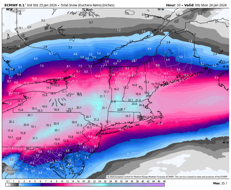 Still bouncing between mostly sleet and mostly snow mix here. More snow at the moment. Crappy flakes but enough that viz is down to about 1/4 mile. Maybe a few survived a trip through the warm nose, but I think most of the snow is forming below 800mb. Not quite snizzle, but very fine and a lot of them and it is definitely accumulating. The temperature which was steadily rising all day reached 21, but that has reversed and we are now a hair under 20. North of the sound is looking very good, even if they get a little mix soon right along the shore.