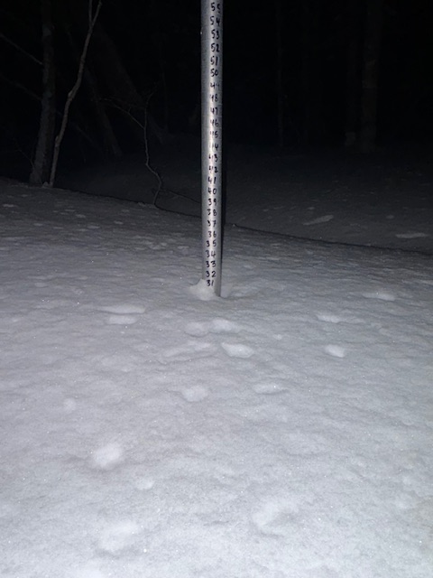 3” past 24 hrs from yesterday’s little fluffer at 1,500ft. Depth 31” at base of Mansfield. Snowpack is solid and robust even at that 1500ft elevation making great skiing to the road/108.