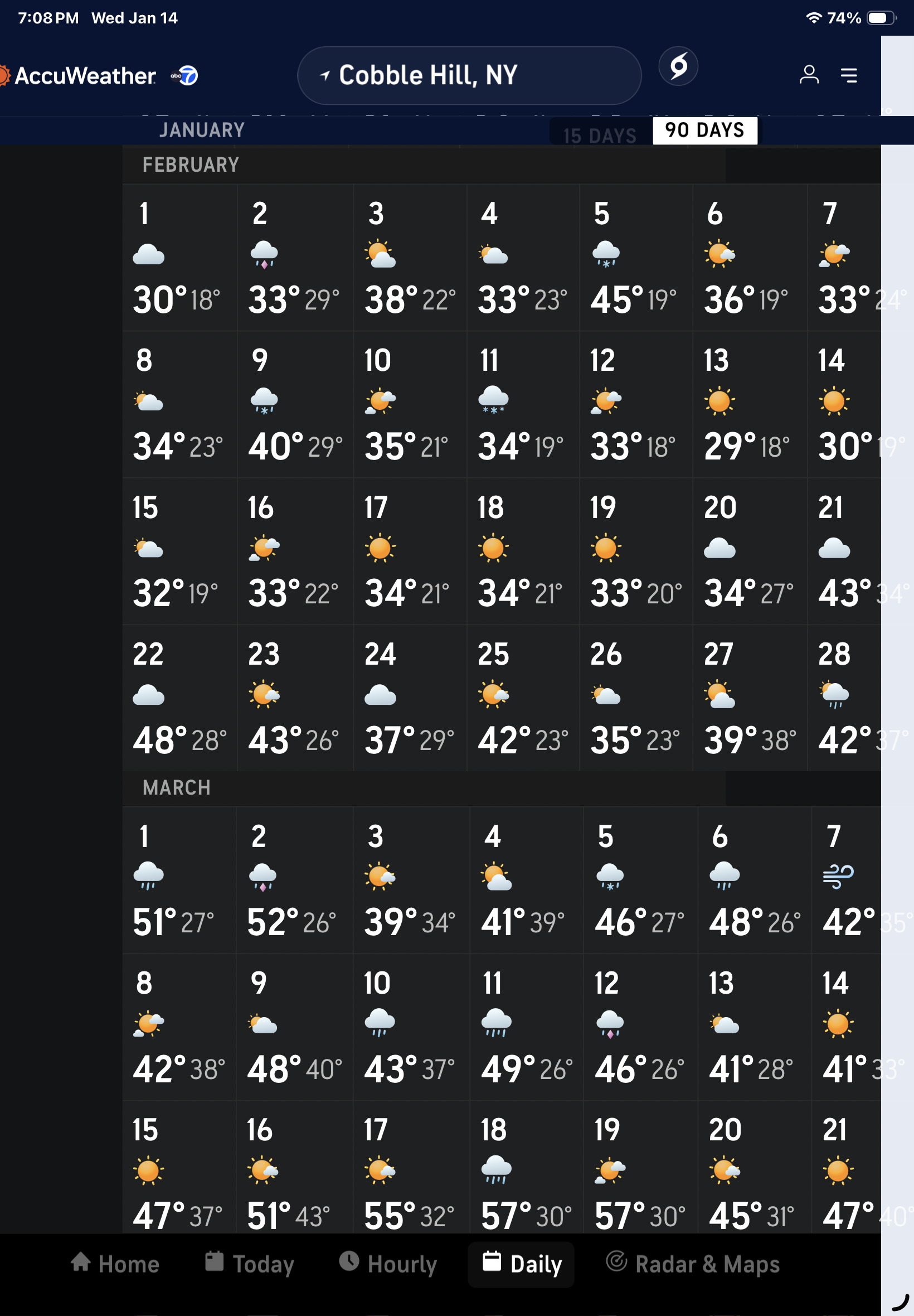 The Accu Weather long range forecast (which will undoubtedly change daily) must have bought into a colder scenario for the city. The first above 56 temperature is forecasted for the day after St Patrick’s on March 18th. Stay well, as always …