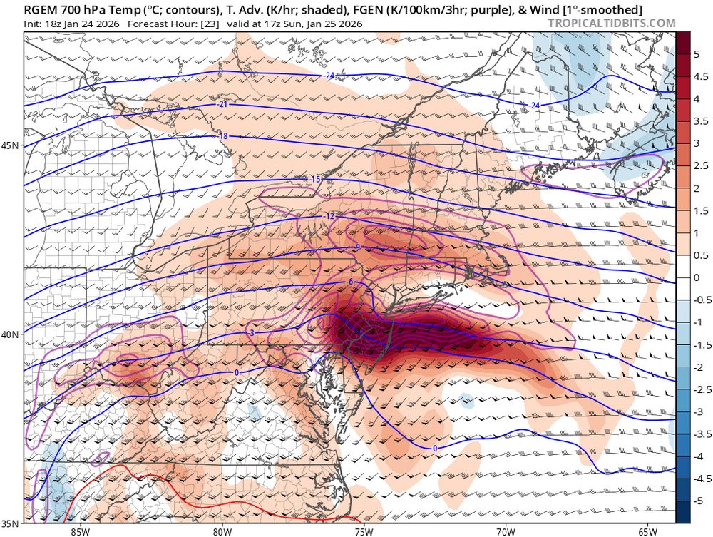 i see zero reason to deviate from 6-10" for the city and about 8-12" here closer to 287... using mostly a RGEM/ECMWF blend with some consideration for the NAM very strong 700mb FGEN will allow for rates up to 2"/hr for a time midday into the early-mid afternoon. should be a fun day tomorrow -