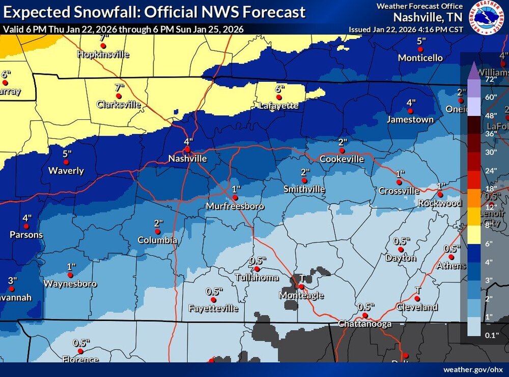 I think it’s because an Ice Storm Warning is issued when freezing rain is the predominant type of forecasted precipitation. In this case, Nashville still falls within the Winter Storm Warning criteria, which is any of the following: Heavy Snow: Accumulations of 3 inches or more in 12 hours, or 4 inches or more in 24 hours. Sleet: Accumulations of 1/2 inch or greater are expected. Freezing Rain (Ice): Accumulations of 1/4 inch or greater (this may also trigger a specific Ice Storm Warning). Combination of Hazards: At least 2 inches of snow combined with any accumulation of sleet and/or ice (freezing rain).