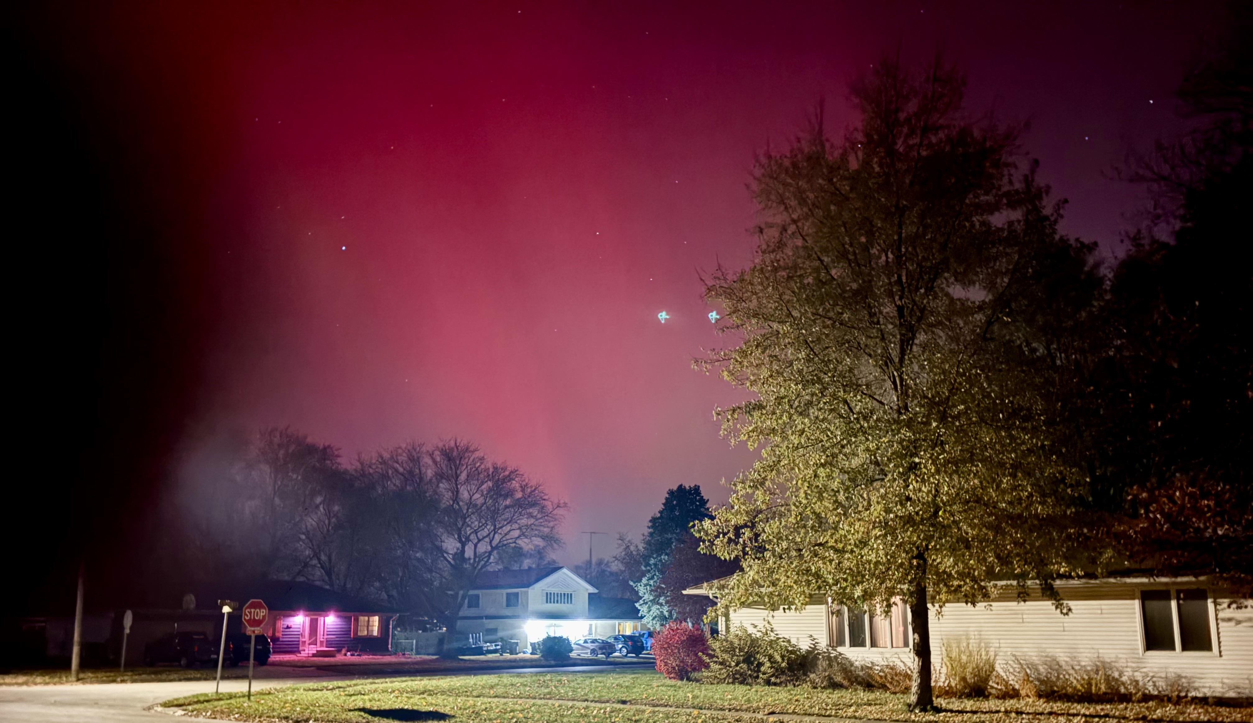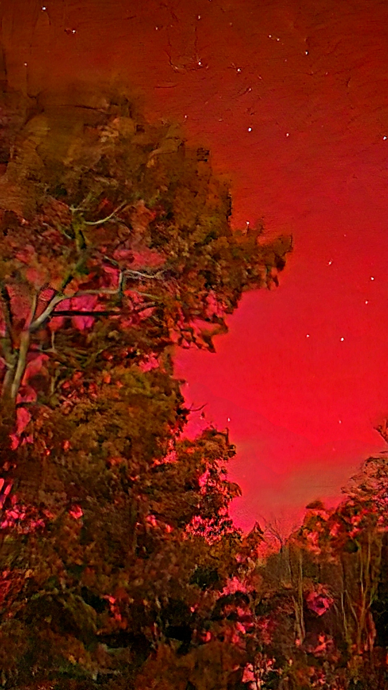 Took a quick look 10 mins ago and was easy to see with naked eyes. 4 second exposure on this pic so obviously enhanced lol but I could see the red thru the branches with my eyes as well. Thought about running down to the lake for a big horizon pic but man it's windy and cold. Maybe tomorrow.